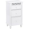 This White 3-Drawer Bathroom Floor Linen Cabinet can be as a storage cabinet and decorate your room. With the white finish and carved design, this cabinet is suitable for any style of bathroom. There are three drawers providing enough storage space and will help you to keep your things neatly organized. It also a good idea to be put beside your sofa as an end table or as a storage cabinet to be put in everywhere as you like. It is ideal as a floor cabinet in the bathroom, hallway, living room etc for your storage needs, and it also is a perfect home decor addition. Don't hesitate to buy it now!